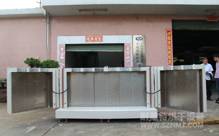 內(nèi)膽材質采用1.5㎜厚SUS#304鏡面不銹鋼板制做,不生銹,使爐內(nèi)清潔、無塵。內(nèi)膽尺寸:寬2.2米,高1.1米,深0.45米。內(nèi)膽四周鋪100mm厚高溫隔熱棉,門邊四周增加耐高溫密封硅膠,使爐外溫度不燙手。