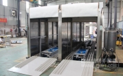 2、外形尺寸:寬4700*高2850*深13900mm,箱體內(nèi)可同時(shí)平排進(jìn)三臺(tái)推車,烘烤時(shí)間可獨(dú)立設(shè)置(見附圖);上料區(qū)長(zhǎng)1500mm,設(shè)有上料斜坡,便于推車進(jìn)入緩沖區(qū);兩端緩沖區(qū)各長(zhǎng)1700mm,各設(shè)有升降平臺(tái),便于推車進(jìn)出烘烤,爐蓋上加裝0.75KW高溫抽風(fēng)風(fēng)機(jī);烘干區(qū)長(zhǎng)7620mm,烘干區(qū)前后裝有隔熱卷閘門,加裝感應(yīng)器,底部設(shè)有傳送鏈條;下料區(qū)長(zhǎng)1500mm, 加裝斜坡 ,以便推車出料。